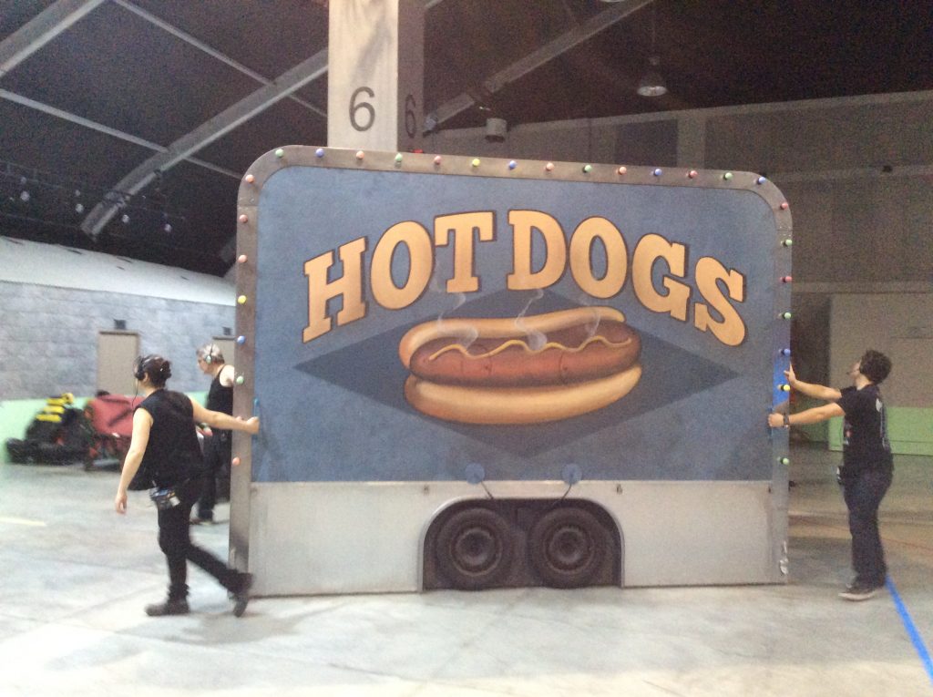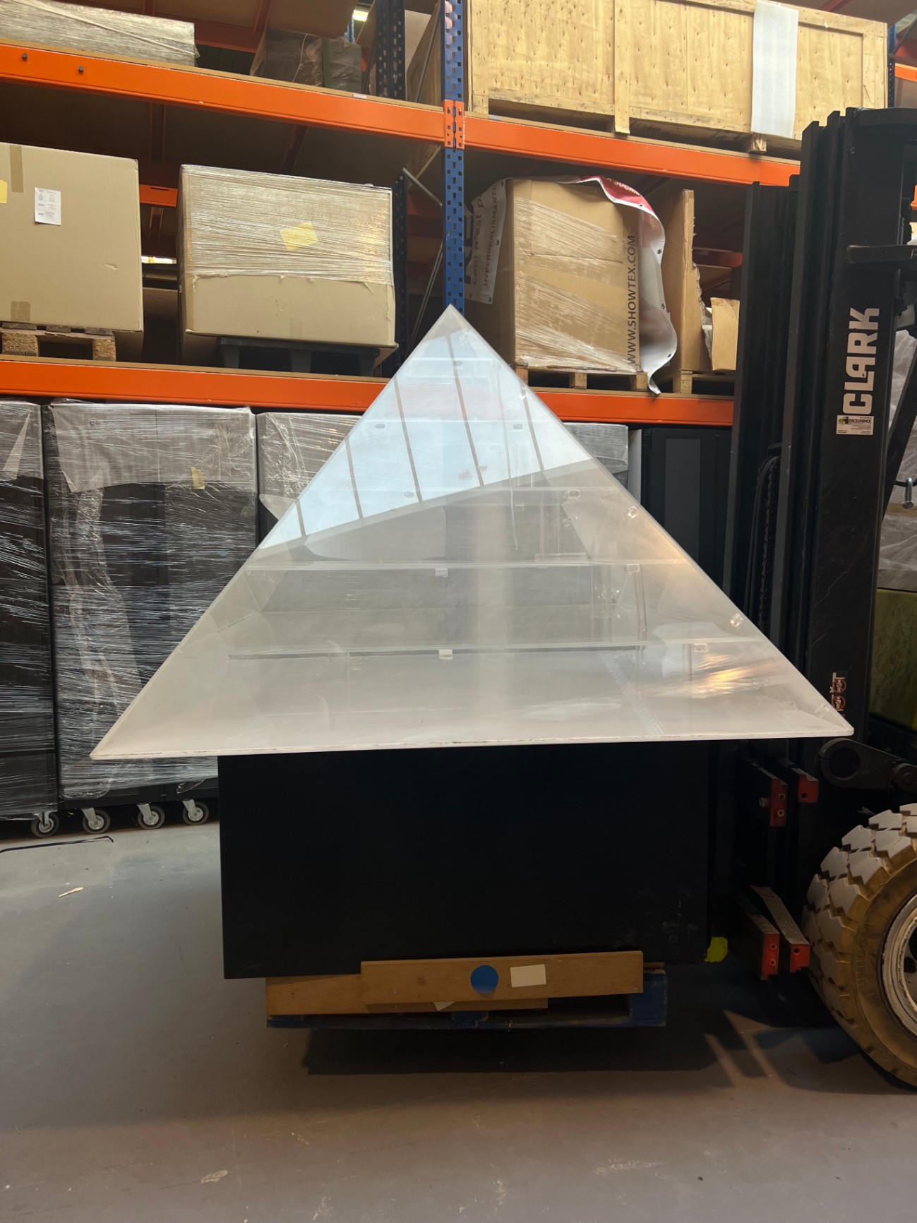 2 big moving podiums. 4m x 2m. With hydraulic system. 2 grands podiums mobiles. 4m x 2m. Avec système hydraulique. 2 grote bewegende podia. 4m x 2m. Met hydraulisch systeem.