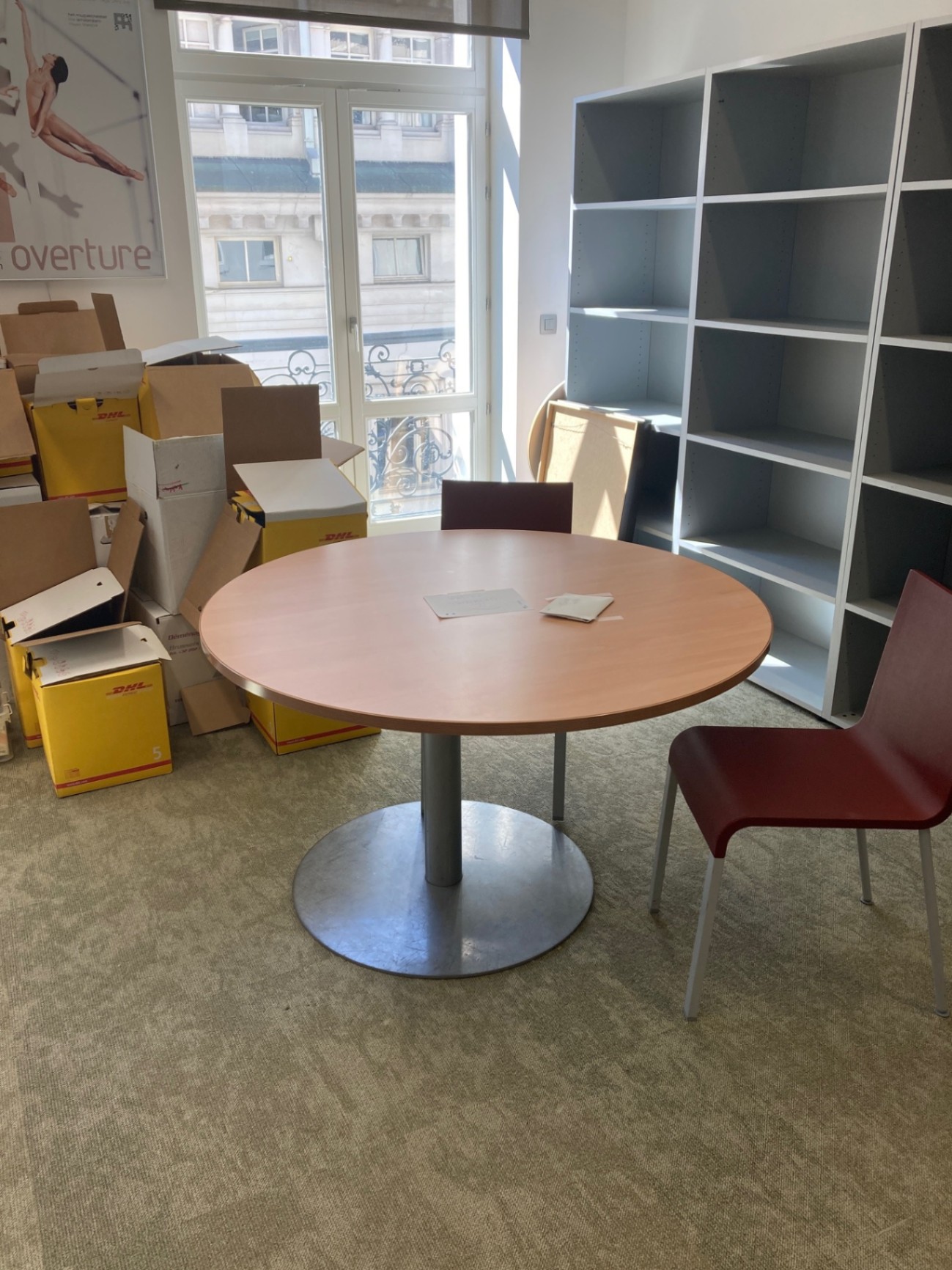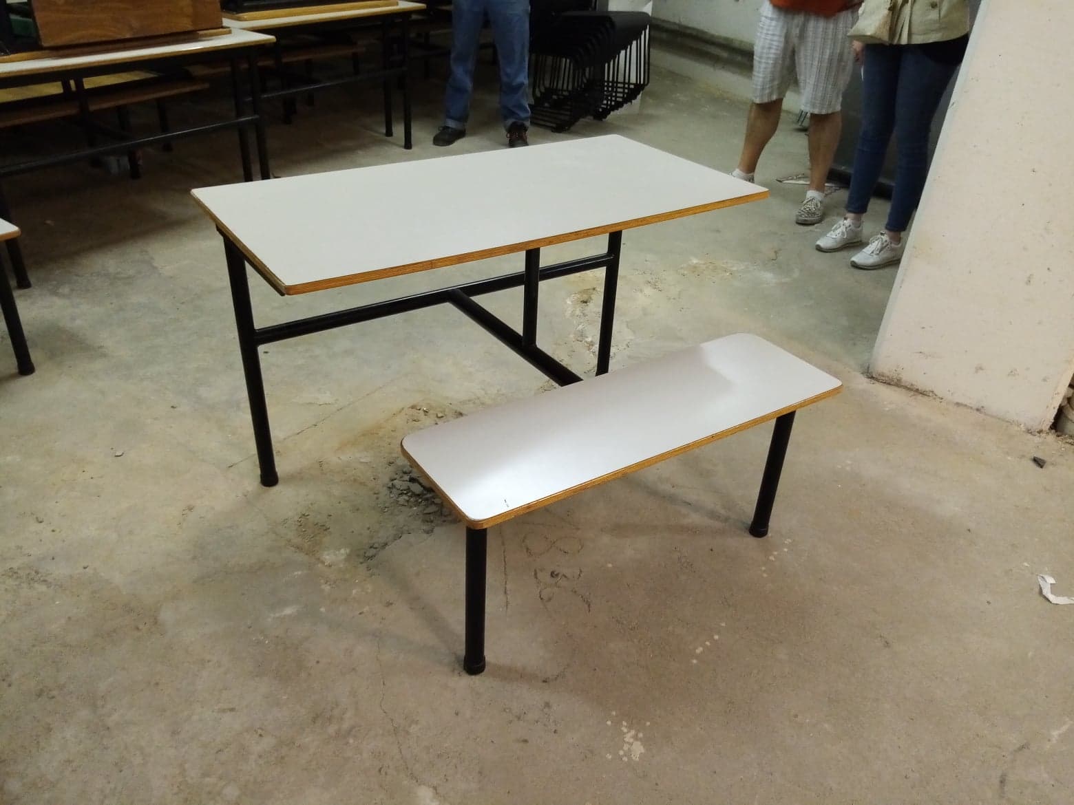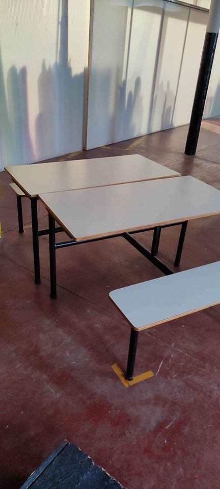 FR: Tables avec banc, à retirer sur place à Molenbeek. 11 pièces disponibles. Idéal pour les enfants et les adultes. Peut également être transformé en banc de pique-nique. EN:Tables with bench, to be collected on site in molenbeek. 11 pieces available. Ideal for both children and adults. Can also be made into a picnic bench.