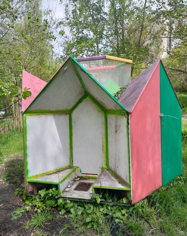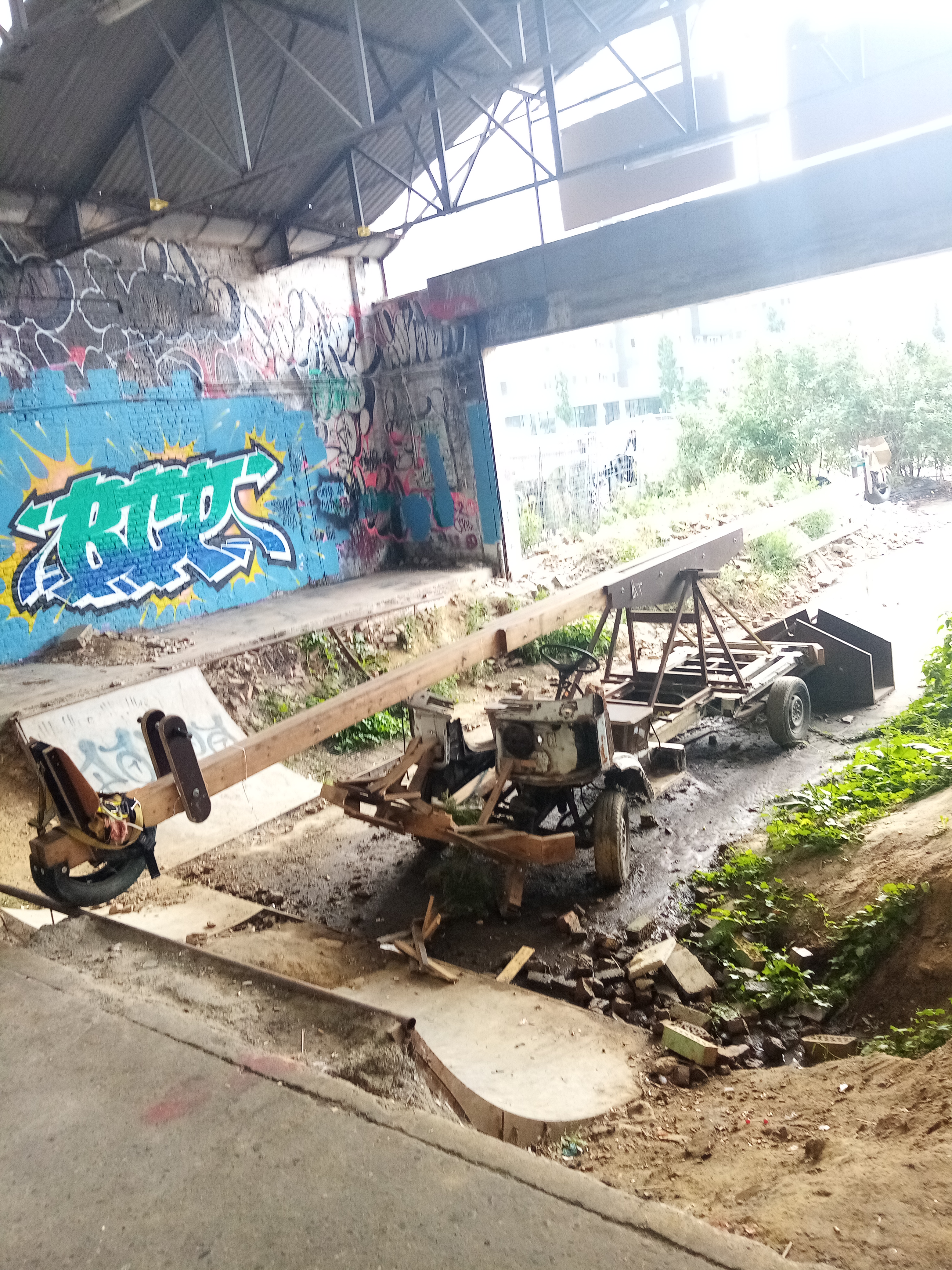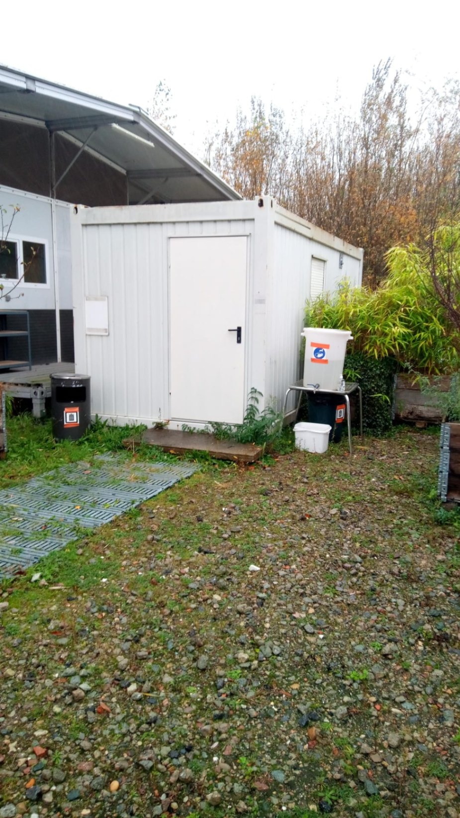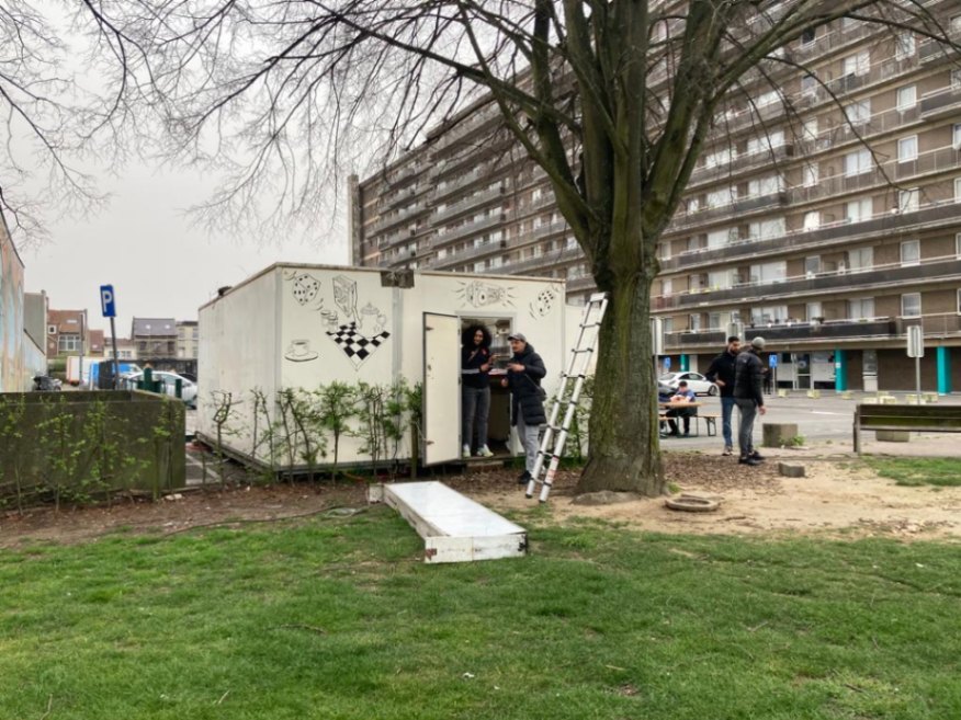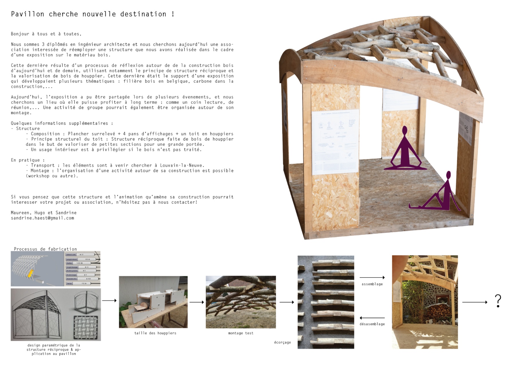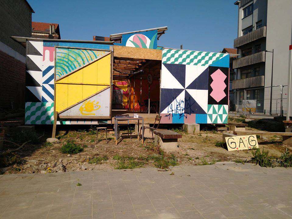 Hut from participative neighborhood project Gag, based in Laken. You have to dismantle the hut yourself, but we can help a little. Many neighbors around the hut are involved and might help you as well. It took us 3,5 days to dismantle the hut back in the days, with 3 unexperienced people. Mostly de-screwing wood. If you are more (experienced) you can do it faster. Transport: we rented the biggest camionette possible with B-license and took 2 drives with it.