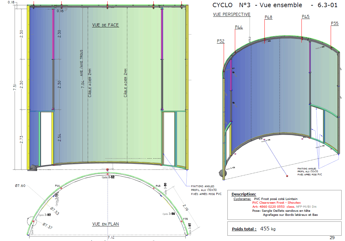 14m lang/long, 210cm hoog/haut met draagstokken/batons à porter van 170cm