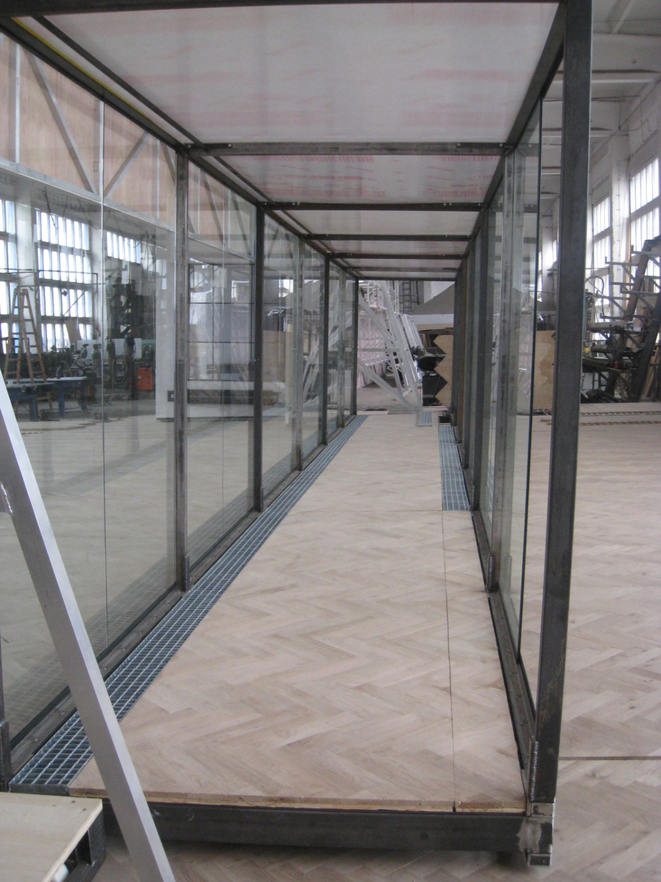 Modular panels that can be assembled to make a 8*3m structure, ceiling structure included. Everything in good shape, already disassembled. Donated few years ago by Woonbox, their 1st model