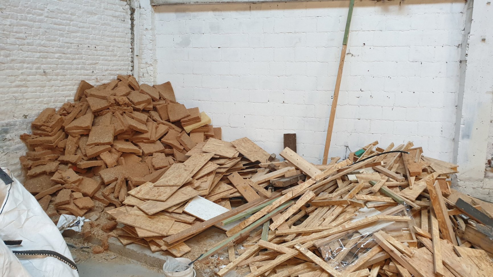Moet opgehaald worden voor 1 april. Het is gedemonteerd. Het geraakt in een 18m3 camionette. Doit être collecté avant le 1er avril. Il a été démantelé. Il entre dans une camionette de 18m3.